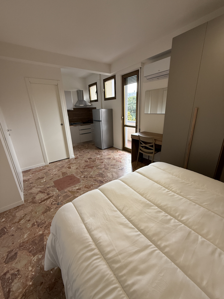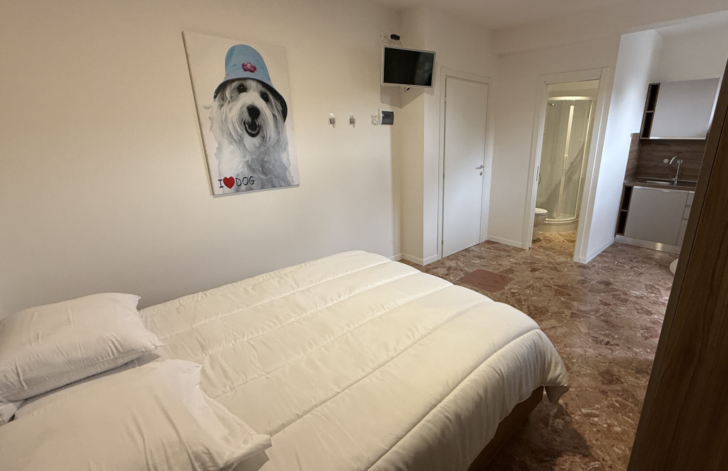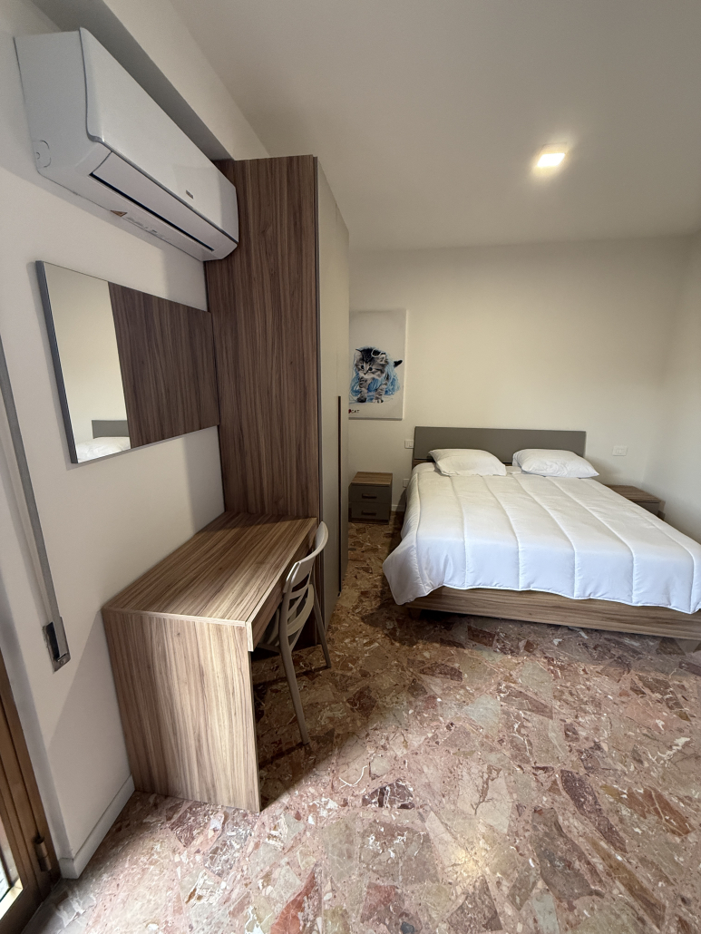 Goditi un soggiorno all’insegna del comfort in questo spazio luminoso e climatizzato. L’alloggio offre un comodo letto matrimoniale, una zona lavoro con scrivania e una cucina completamente attrezzata. Il punto di forza è la splendida terrazza, perfetta per i tuoi momenti di relax. Il bagno privato è completo di doccia e kit di cortesia. Ambiente non fumatori per garantirti la massima freschezza e pulizia.